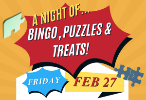 Ladies, are you wondering what you will do on a cold, winter night in February? Wonder no more … block out Friday, February 27 at 6:30 PM for our Oasis Event! Join us for a fun night of Bingo, Puzzle Contest & Treats! Start practicing your “Cover All” and finding the edge pieces after you register for the fun.